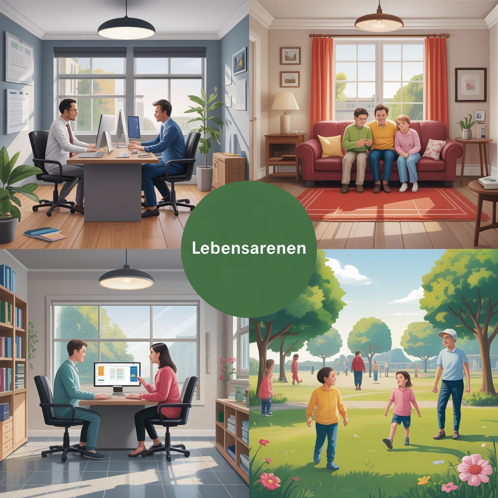 Die 6 Lebensarenen sind zentrale Lebensbereiche, die unser Wohlbefinden, unsere Zufriedenheit und unsere persönliche Entwicklung maßgeblich beeinflussen. Sie umfassen in der Regel: Beruf & Leistung, Familie & soziale Kontakte, Gesundheit & Körper, Sinn & Spiritualität, Freizeit & Erholung sowie materielle Sicherheit. Jeder Bereich spielt eine wichtige Rolle für ein ausgeglichenes und erfülltes Leben.